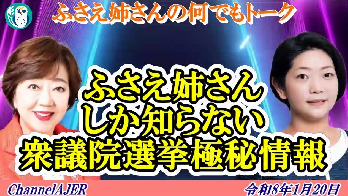 ふさえ姉さんの何でもトーク「ふさえ姉さんしか知らない衆議院選挙極秘情報(前半) 太田房江&大沼瑞穂 AJER2026.1.20(5)