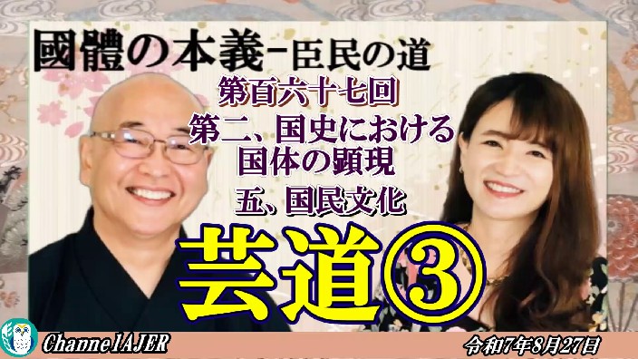 『国体の本義』第2国史における国体の顕現 5.国民文化ー芸道③」小名木善行&佐波優子AJER2025.8.27(3)