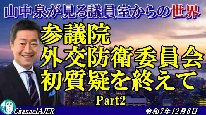 「参議院外交防衛委員会初質疑を終えて(Part2-前半)」山中 泉 AJER2025.12.8(3)