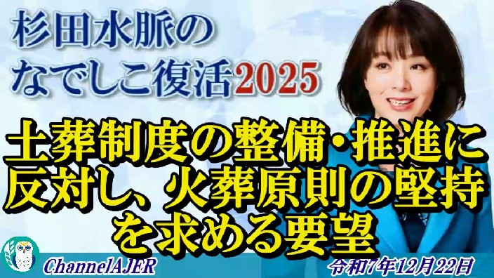 杉田水脈のなでしこ復活2025「土葬制度の整備・推進に反対し、火葬原則の堅持を求める要望(後半)」杉田水脈 AJER2025.12.22(6)