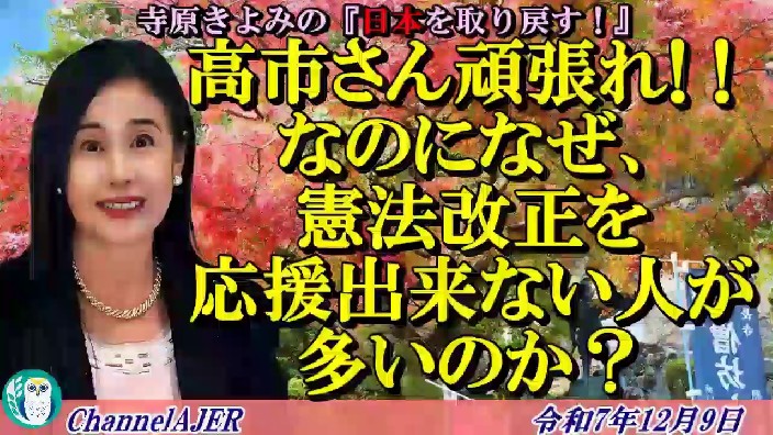 寺原きよみの『日本を取り戻す!』第127回「高市さん頑張れ!!なのになぜ、憲法改正を応援できない人が多いのか?(後半)」寺原きよみ AJER2025.12.9(2)