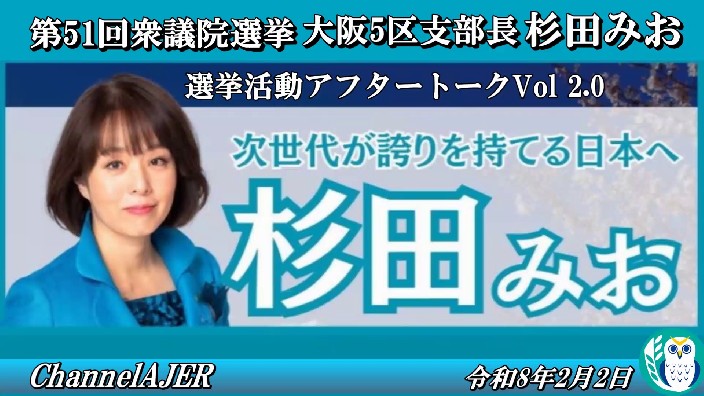 杉田水脈のなでしこ復活「選挙活動アフタートークVol2.0ー20260202」
