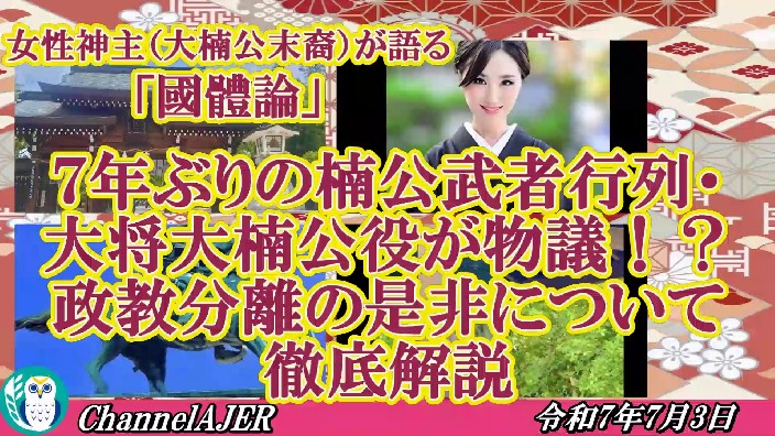 女性神主が語る國體論ー第30回「7年ぶりの楠公武者行列・大将大楠公役が物議!?政教分離の是否について徹底解説」山下弘枝 AJER2025.7.3(1)