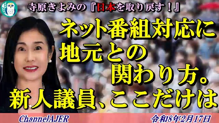 寺原きよみの『日本を取り戻す!』「ネット番組対応に地元との関わり方。新人議員、ここだけは(後半)」寺原きよみ AJER2026.2.17(2)