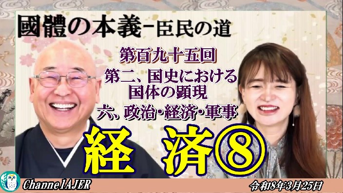 『国体の本義』第2国史における国体の顕現 6.政治・経済・軍事ー経 済⑧」小名木善行&佐波優子AJER2026.3.25(3)