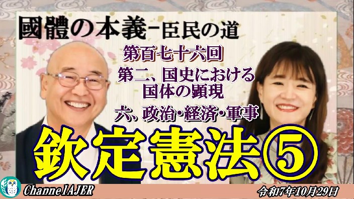 『国体の本義』第2国史における国体の顕現 6.政治・経済・軍事ー欽定憲法⑤」小名木善行&佐波優子AJER2025.10.29(3)