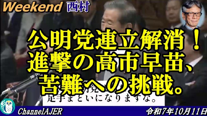 公明党連立解消!進撃の高市早苗、苦難への挑戦。(後半) 西村幸祐 AJER2025.10.11(2)