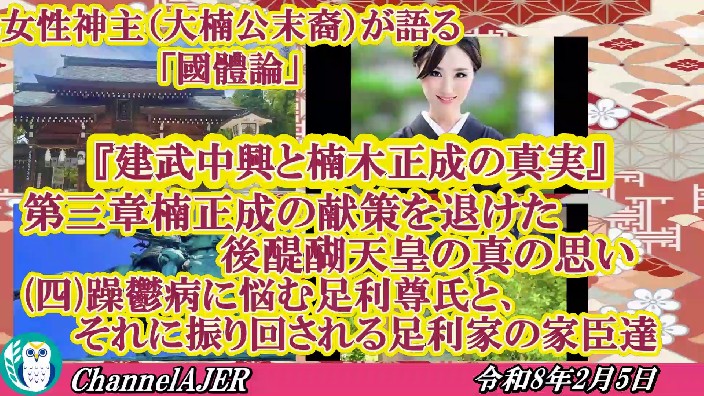 女性神主が語る國體論「第三章楠木正成の献策を退けた後醍醐天皇(四)躁鬱病に悩む足利氏と、それに振り回される足利家の家臣達」山下弘枝 AJER2026.2.5(2)