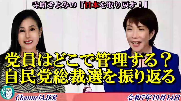 寺原きよみの『日本を取り戻す!』第119回「党員はどこで管理する?自民党総裁選を振り返る(後半)」寺原きよみ AJER2025.10.14(2)