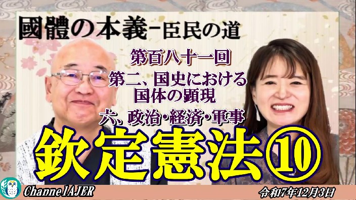 『国体の本義』第2国史における国体の顕現 6.政治・経済・軍事ー欽定憲法➉」小名木善行&佐波優子AJER2025.12.3(3)