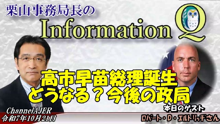 InformationQ Vol65.0「エルドリッヂさんの世界の情報「高市早苗総理誕生 どうなる?政局」(後半)栗山 勉 AJER2025.10.21(6)