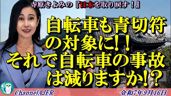 寺原きよみの『日本を取り戻す!』第115回「自転車も青切符の対象に!!それで自転車の事故は減りますか!?(前半)」寺原きよみ AJER2025.9.16(1)