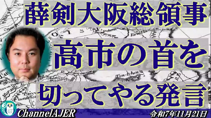 「薛剣大阪総領事 高市の首を切ってやる発言(前半)」宇山卓栄 AJER2025.11.21(3)