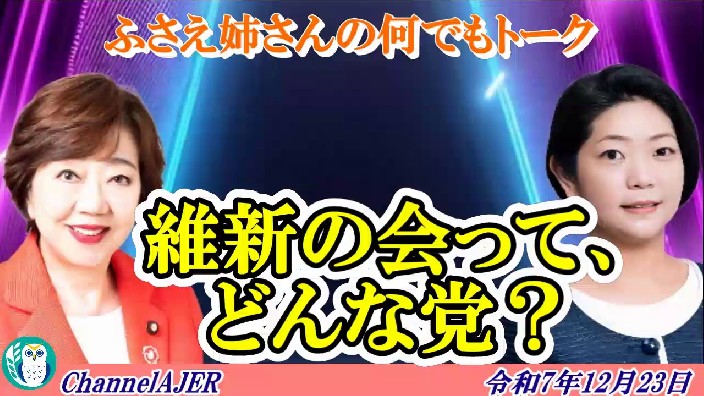 ふさえ姉さんの何でもトーク「維新の会って、どんな党?(前半) 太田房江&大沼瑞穂 AJER2025.12.23(5)