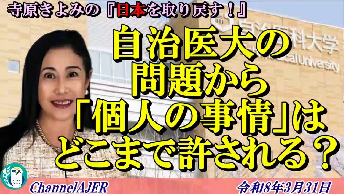 寺原きよみの『日本を取り戻す!』「自治医大の問題から「個人の事情」はどこまで許される?(後半)」 AJER2026.3.31(2)