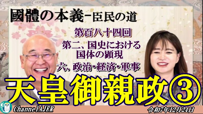 『国体の本義』第2国史における国体の顕現 6.政治・経済・軍事ー天皇御親政③」小名木善行&佐波優子AJER2025.12.24(3)