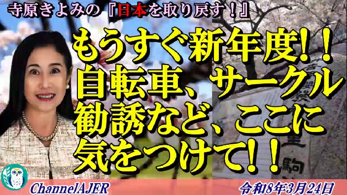 寺原きよみの『日本を取り戻す!』「もうすぐ新年度!!自転車、サークル勧誘など、ここに気をつけて!!(前半)」 AJER2026.3.24(1)