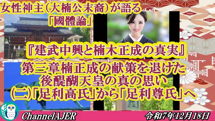 女性神主が語る國體論 第三章楠木正成の献策を退けた後醍醐天皇の真の思い(二)「足利高氏」から「足利尊氏」へ」山下弘枝 AJER2025.12.18(6)