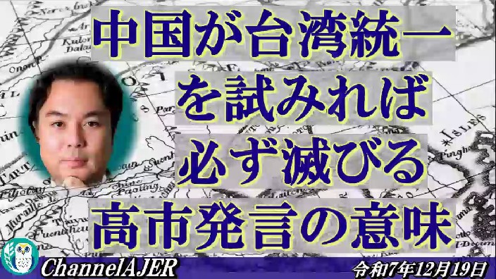 「中国が台湾統一を試みれば必ず滅びる 高市発言の意味(後半)」宇山卓栄 AJER2025.12.19(3)